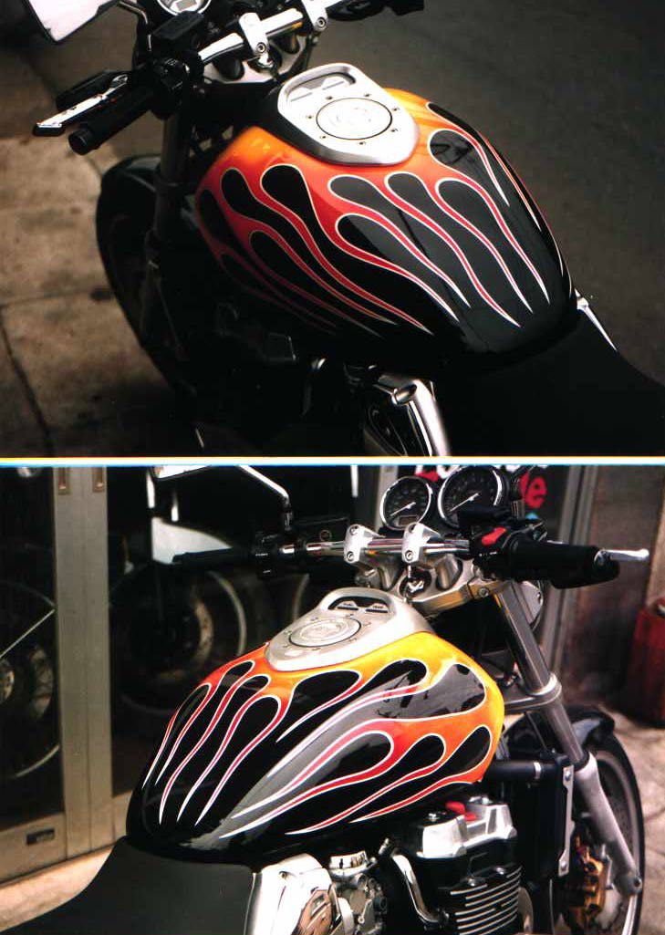 CB750Fカスタムペイント(15年前のかけだし時代の作品です。U倉庫店頭にて健在です)